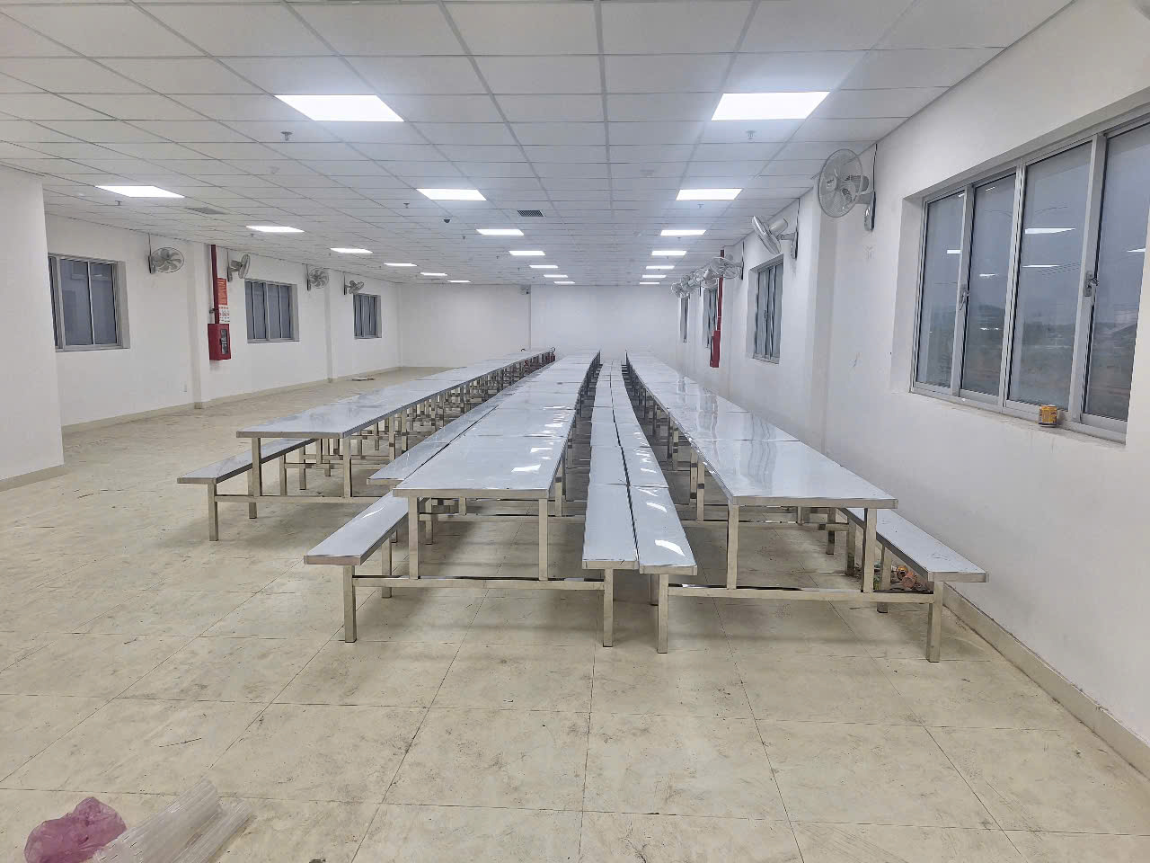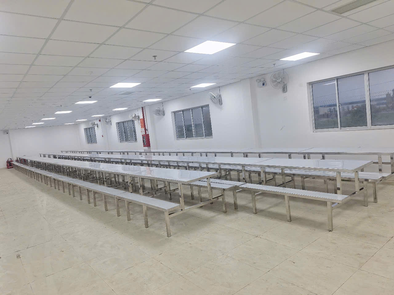 hình ảnh lắp đặt bàn ăn công nhân inox cho nhà máy