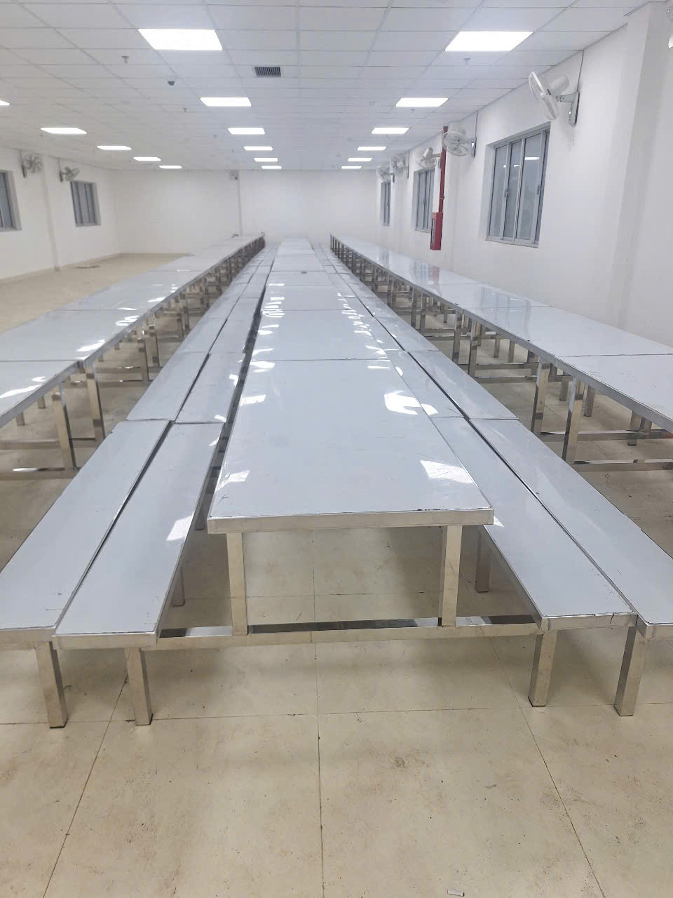 hình ảnh dảy bàn ăn công nghiệp inox cho công nhân