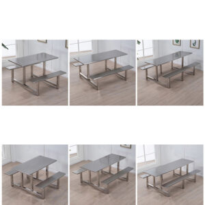 Bàn ăn công nghiệp inox 10 ghế 200x140x75cm là lựa chọn tuyệt vời cho bếp tập thể. Chất liệu inox 304 bền, chống gỉ và dễ vệ sinh. Thiết kế ghế liền, có thể gấp hoặc treo, tiết kiệm không gian. Đây là giải pháp hoàn hảo, mang lại sự thoải mái và tiện nghi.