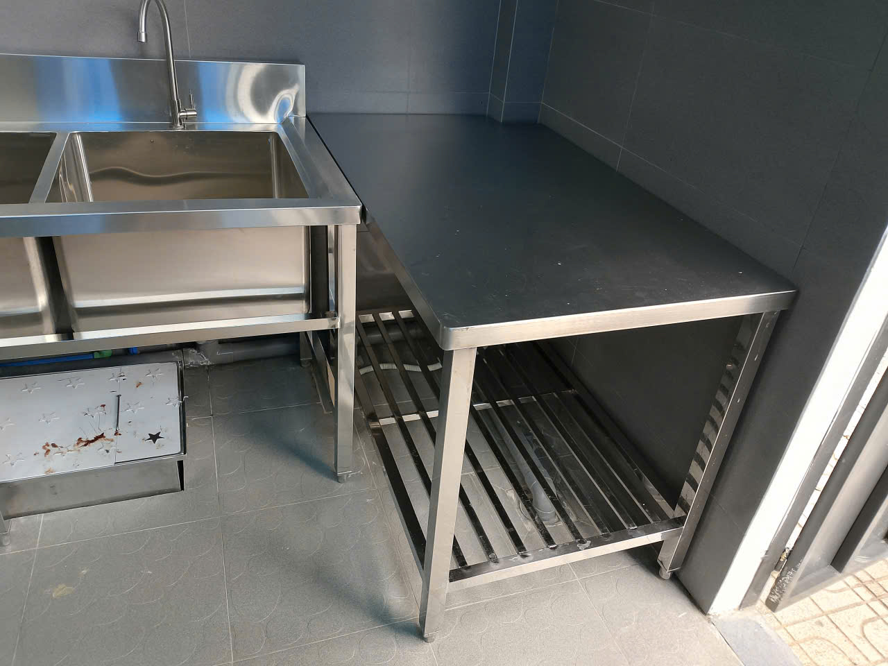 thi công bếp ăn công nghiệp công ty UNIND Bình Phước 2025 lắp đặt chậu rửa công nghiệp 2 hố (12)