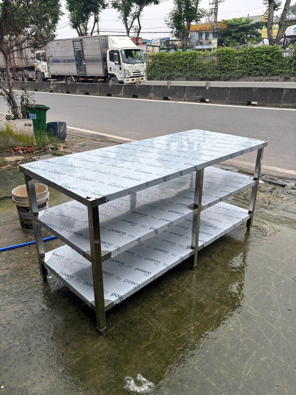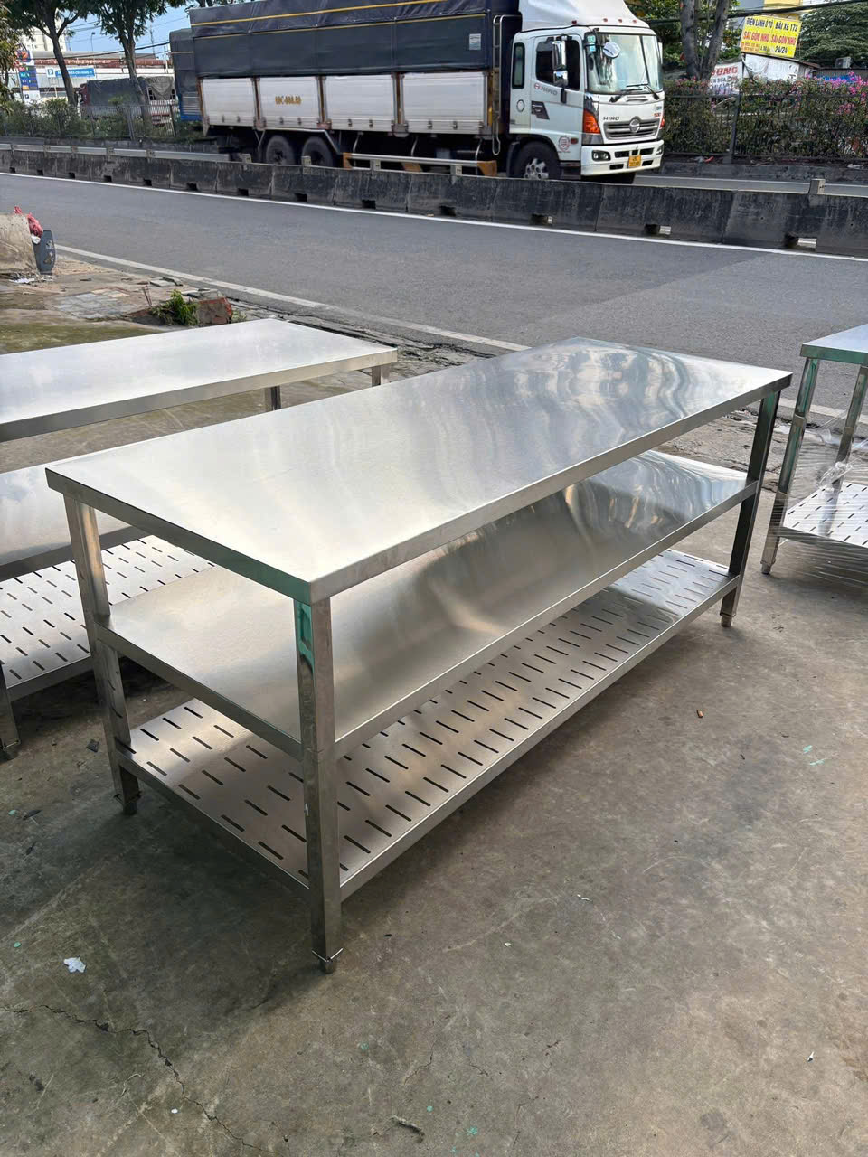 Hình ảnh gia công bàn inox xếp gọn chữ X
