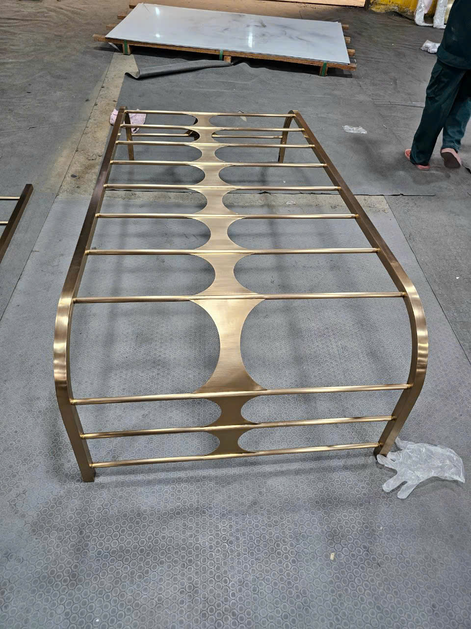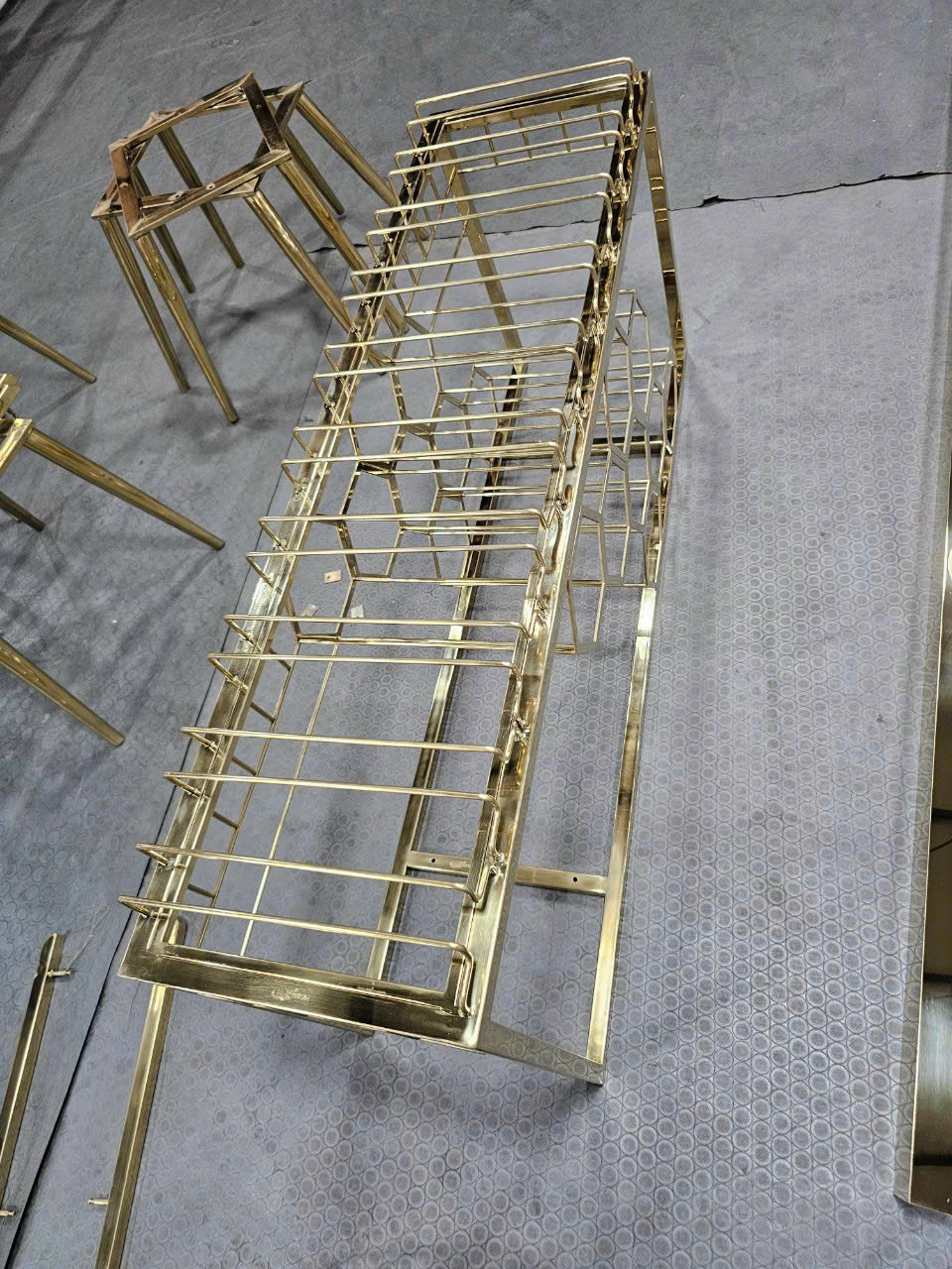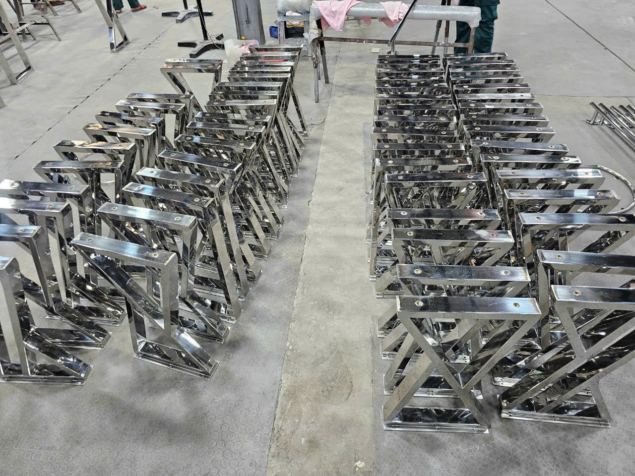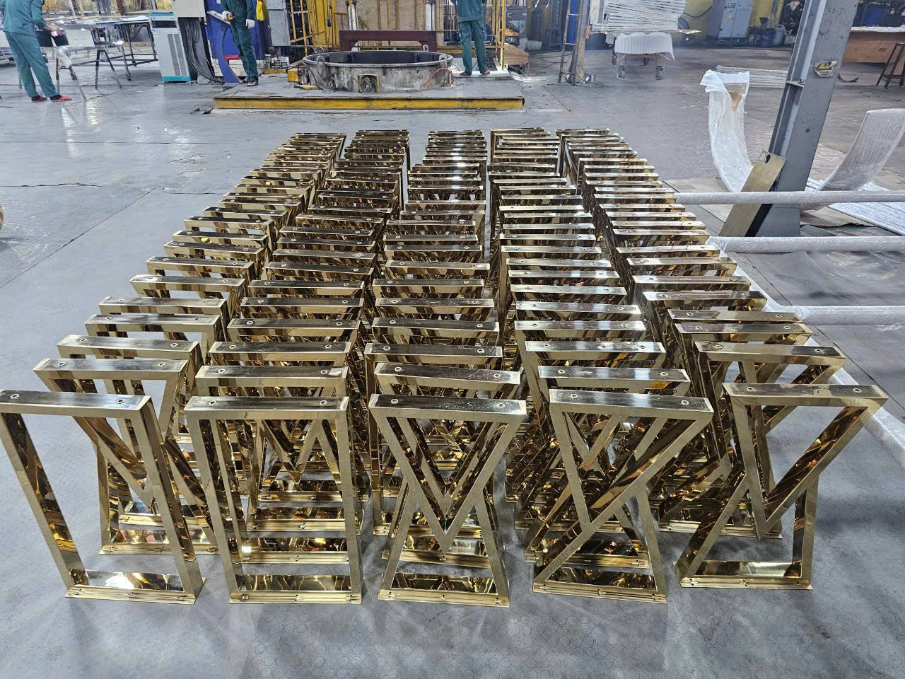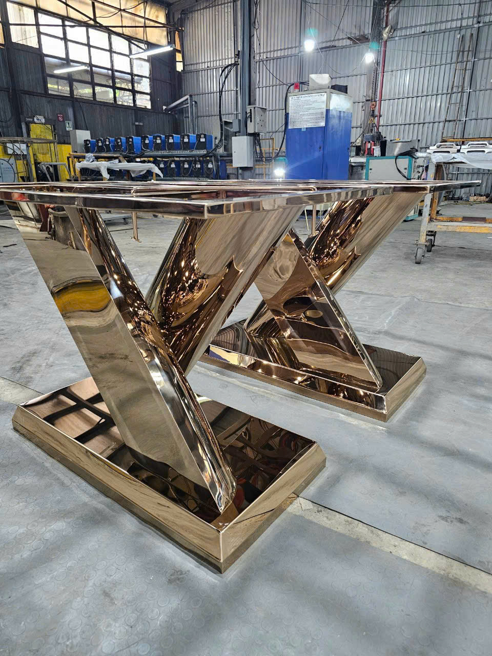 Hình ảnh gia công chân bàn inox chữ X mạ vàng