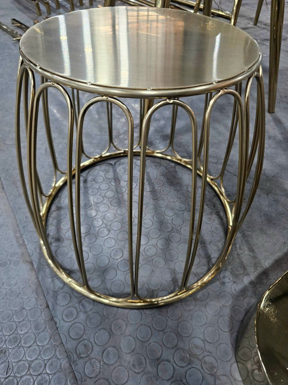 Hình ảnh gia công bàn inox tròn mạ vàng 3 chân