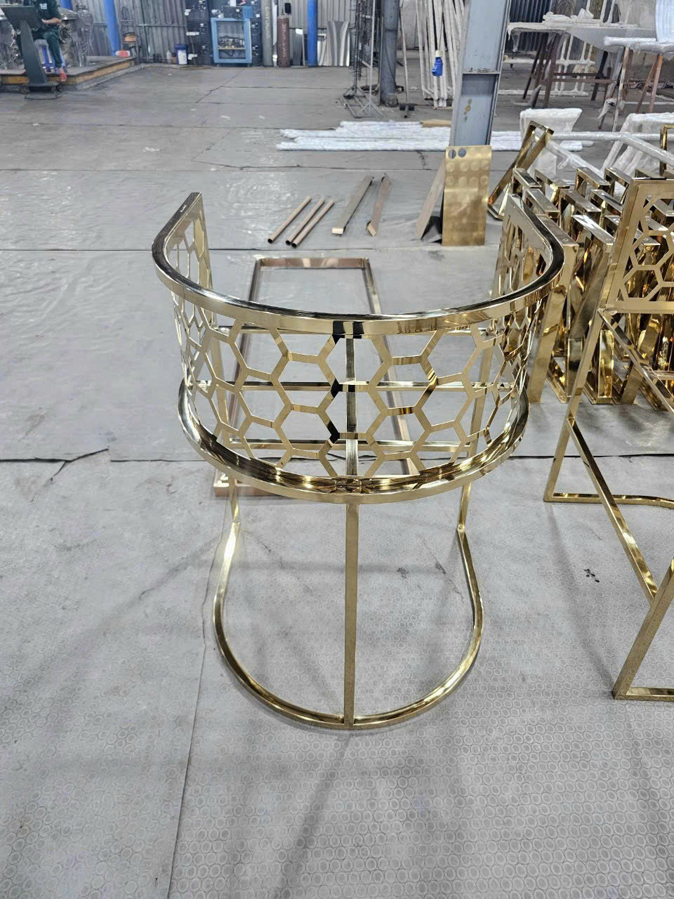 Hình ảnh gia công ghế đôn inox mạ vàng