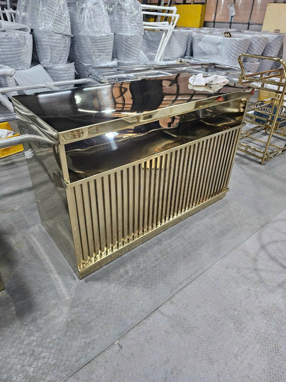 Hình ảnh gia công bàn tiếp tân inox mạ vàng