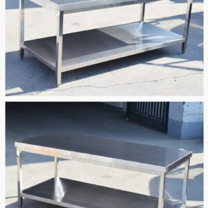 Bàn bếp inox 2 tầng dùng để sơ chế thực phẩm, soạn đồ ăn, bàn thao tác trung gian trong nhà hàng, quán ăn, nhà ăn công nghiệp, canteen, bệnh viện, trường học…