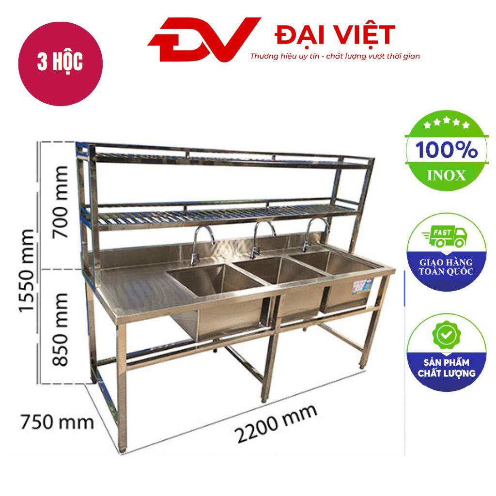 Tiêu ChíChậu rửa công nghiệp 3 hố kèm kệ trái và 2 kệ trên 2200x750x1550mm (Cơ Khí Đại Việt)Sản Phẩm Giá Rẻ