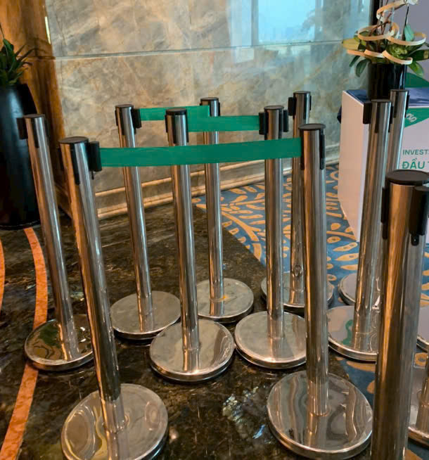 hình ảnh cột chắn inox được sử dụng phân luồng trong sân bay, sự kiện