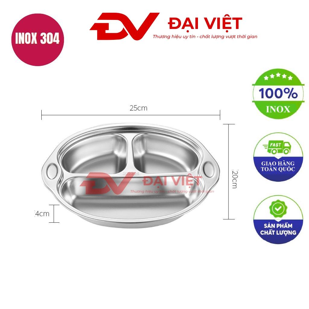 khay ăn cơm inox 3 ngăn 25x20x4cm