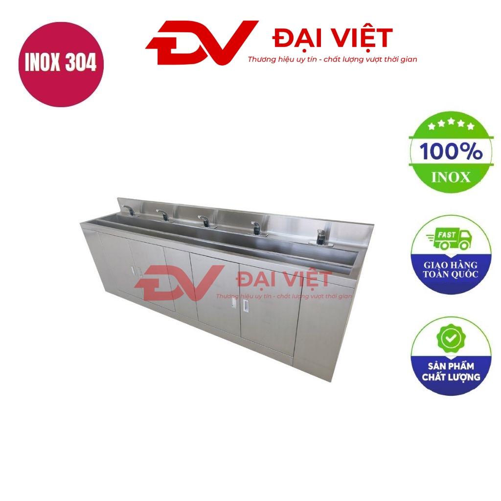 Hình ảnh thực tế Máng rửa tay inox cho trẻ mầm non sản xuất bởi Cơ Khí Đại Việt, thể hiện thiết kế hiện đại và vật liệu cao cấp.
