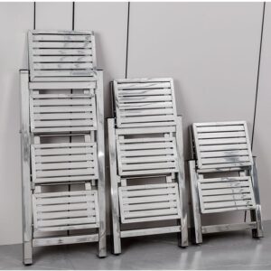 Thang Inox gấp 3 bậc gấp 42x52x70cm, là lựa chọn lý tưởng cho gia đình và công việc. Chất liệu inox 304 cao cấp, chống gỉ, với tải trọng 170kg. Sản phẩm gấp gọn, bền, an toàn và đẹp. Thiết kế hiện đại, sử dụng công nghệ chấn dập CNC, mang lại trải nghiệm tối ưu.
