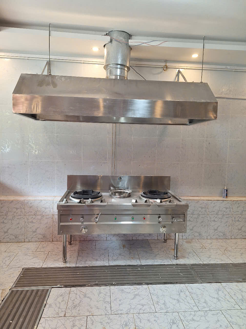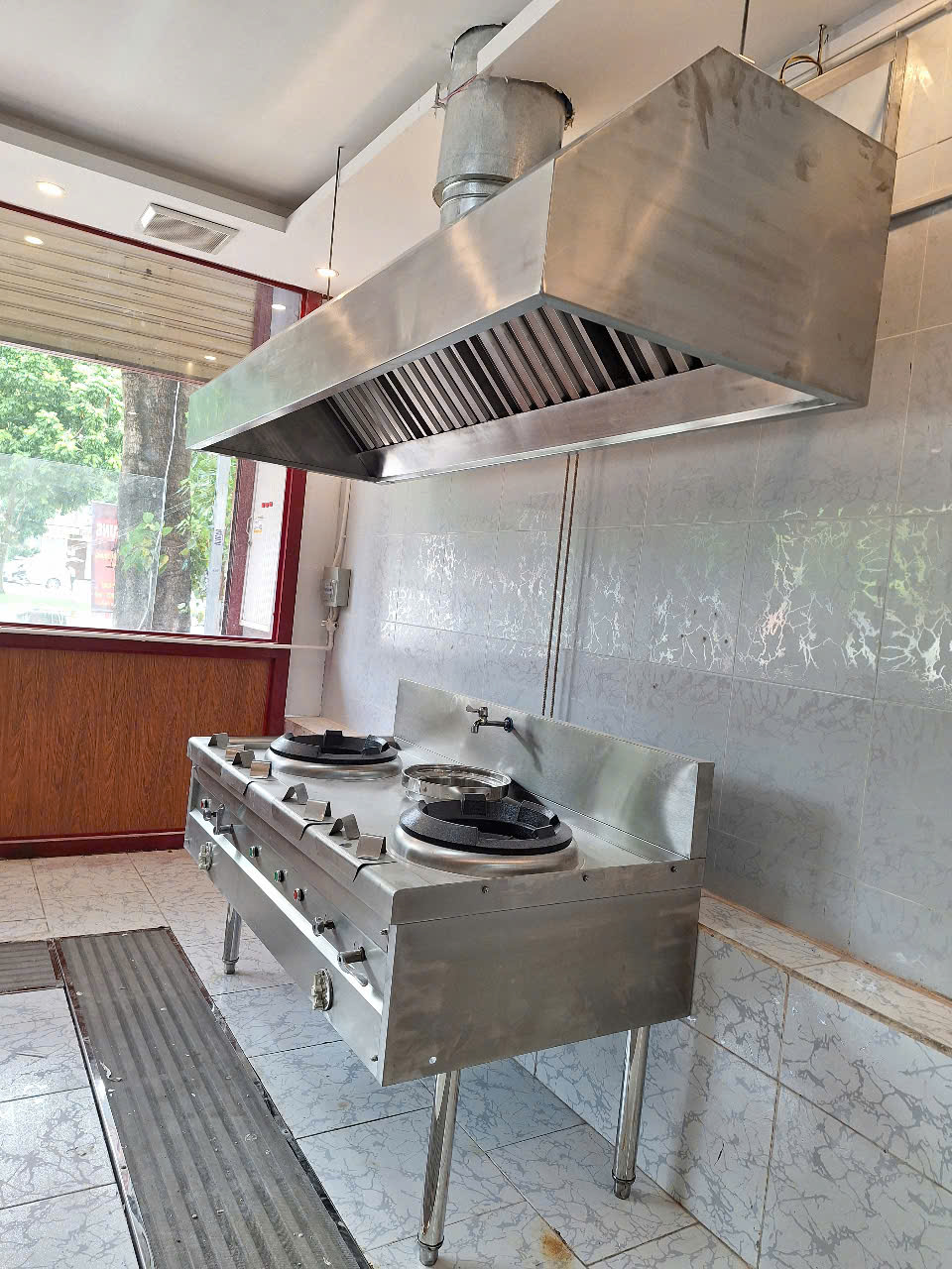 Thi công bếp ăn nhà hàng Triều Châu Dương Ký quận bình tân – chụp hút khói lắp trên bếp á 2 họng