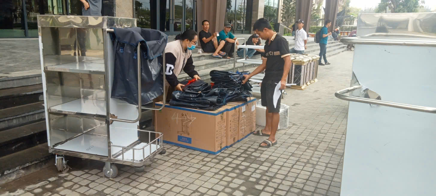 - Vệ sinh công nghiệp & giặt là: xe làm phòng, máy hút bụi, máy rửa sàn, hóa chất giặt tẩy.