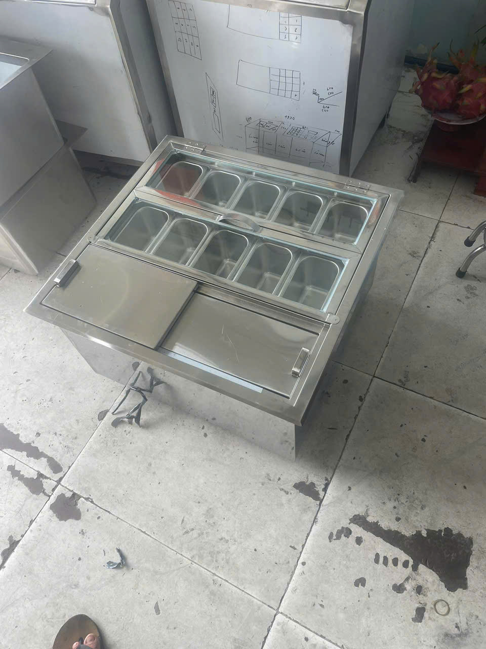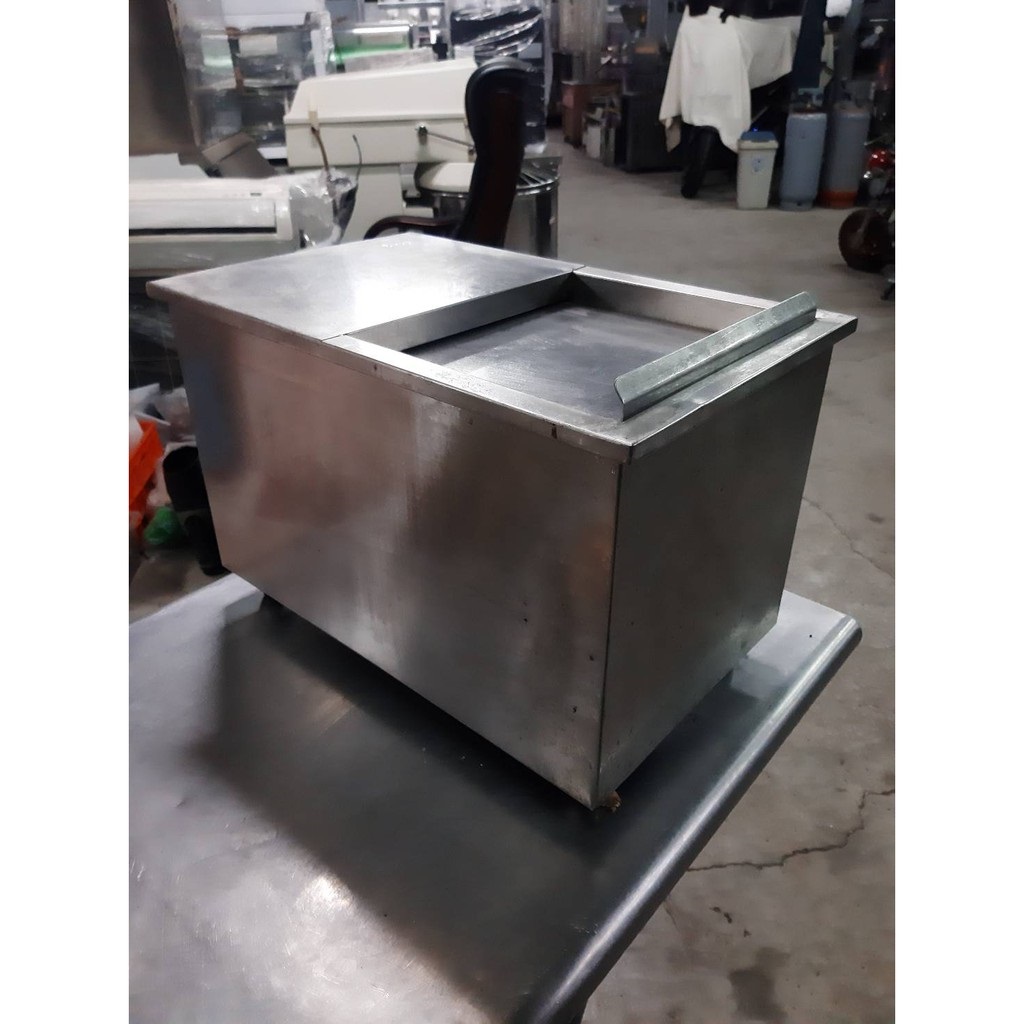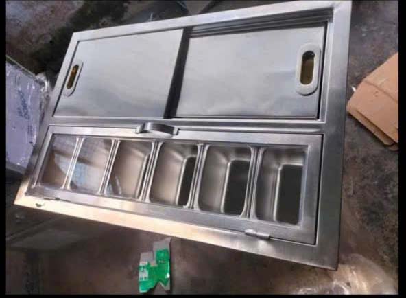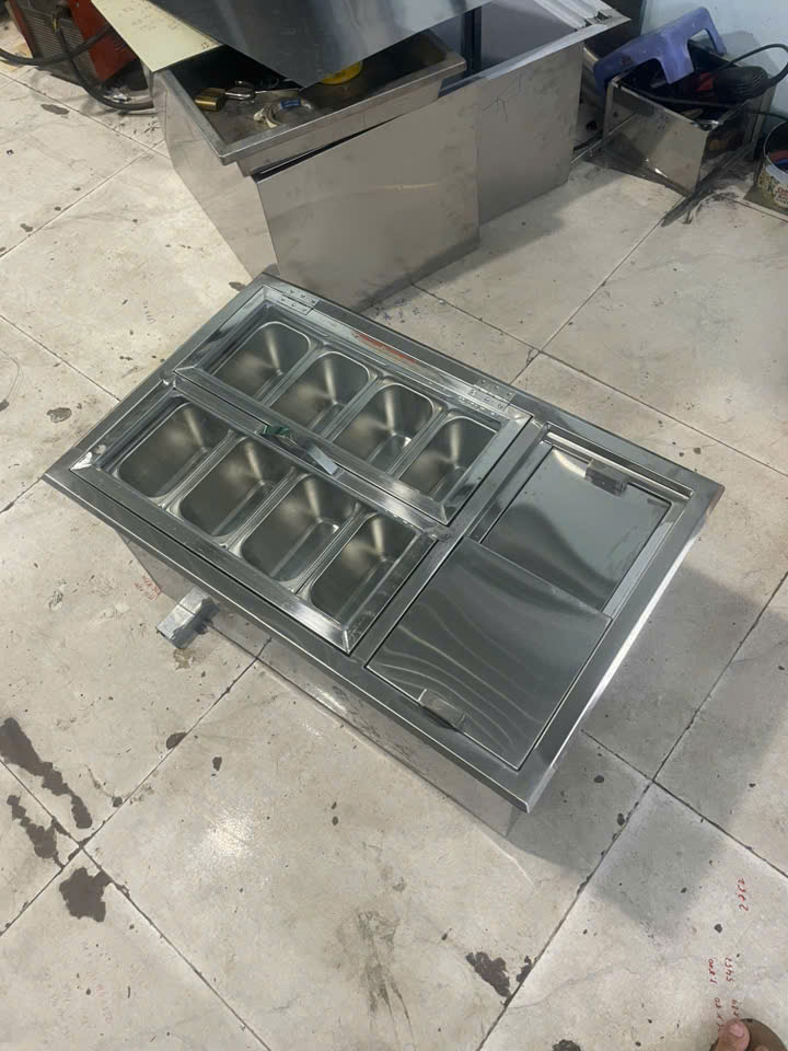 Gia công thùng đá inox nắp trượt kèm khay topping cho khách hàng