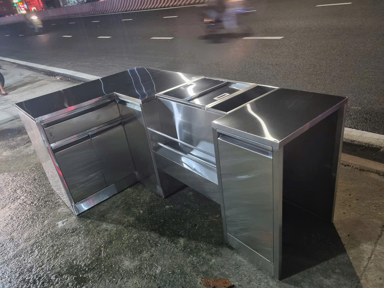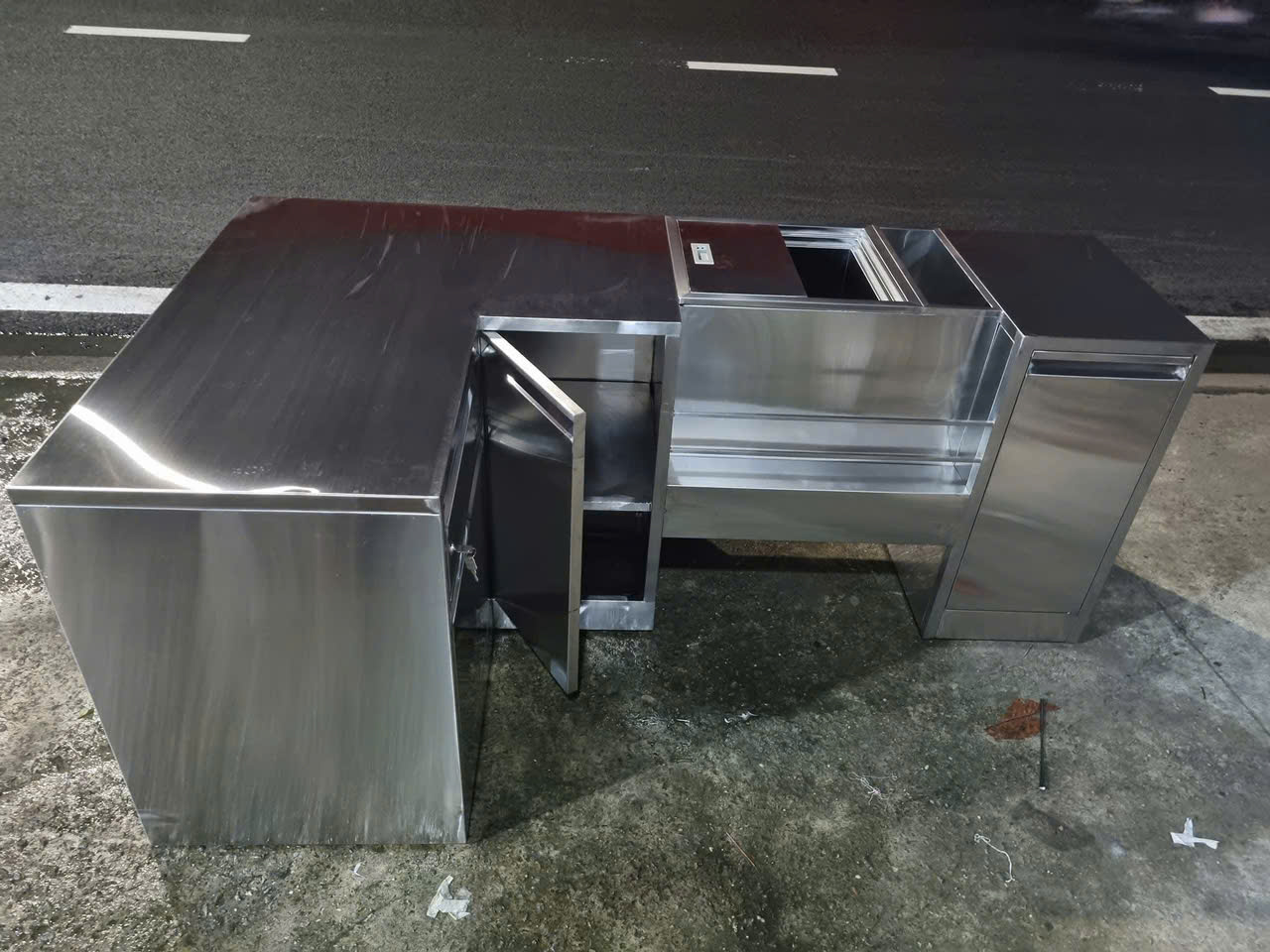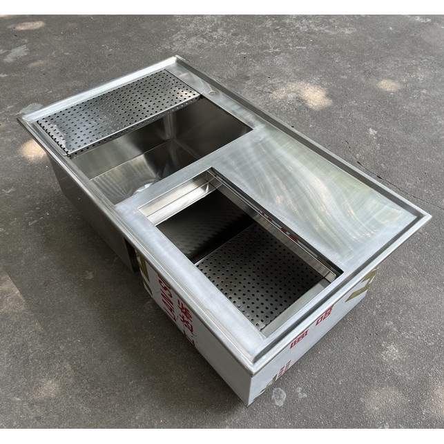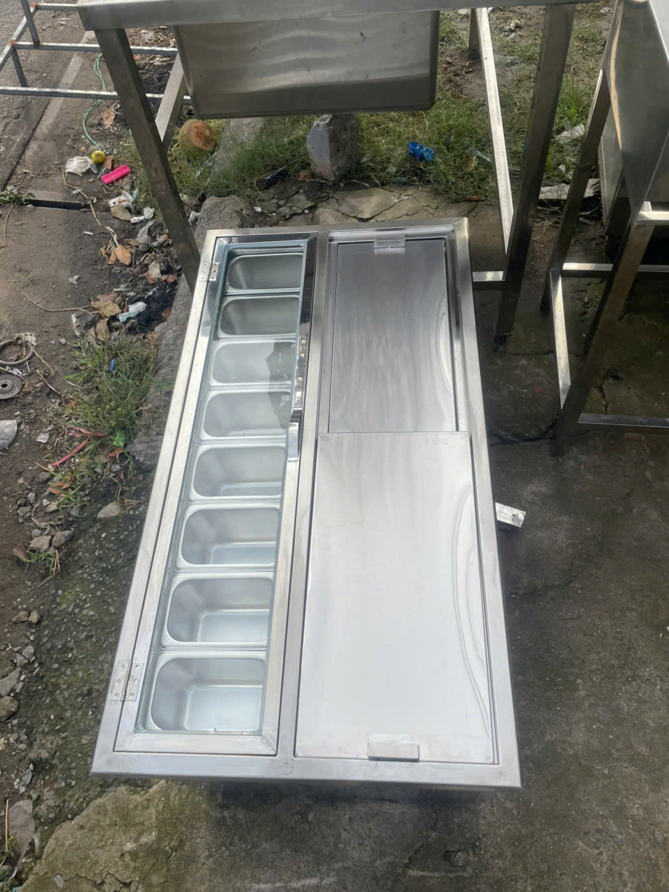 Gia công thùng đá inox nắp trượt kèm khay topping cho khách hàng