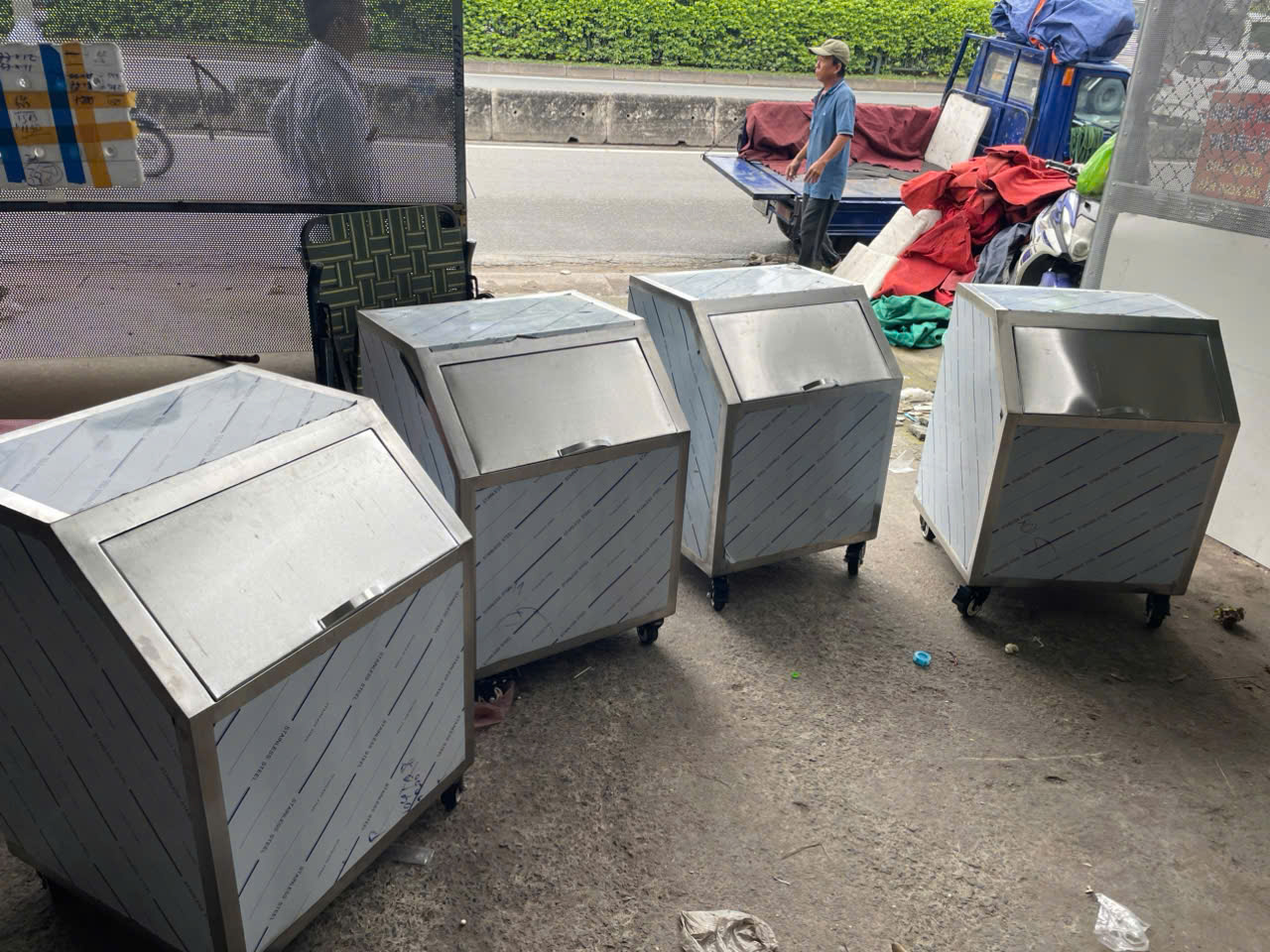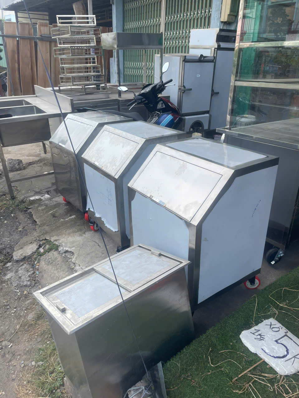 Hình ảnh bàn giao và lắp đặt thùng đá inox nắp trượt cho khách hàng