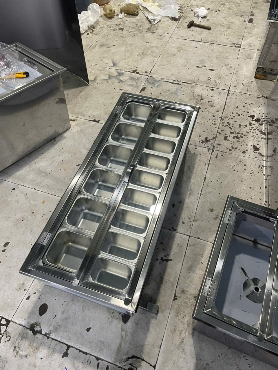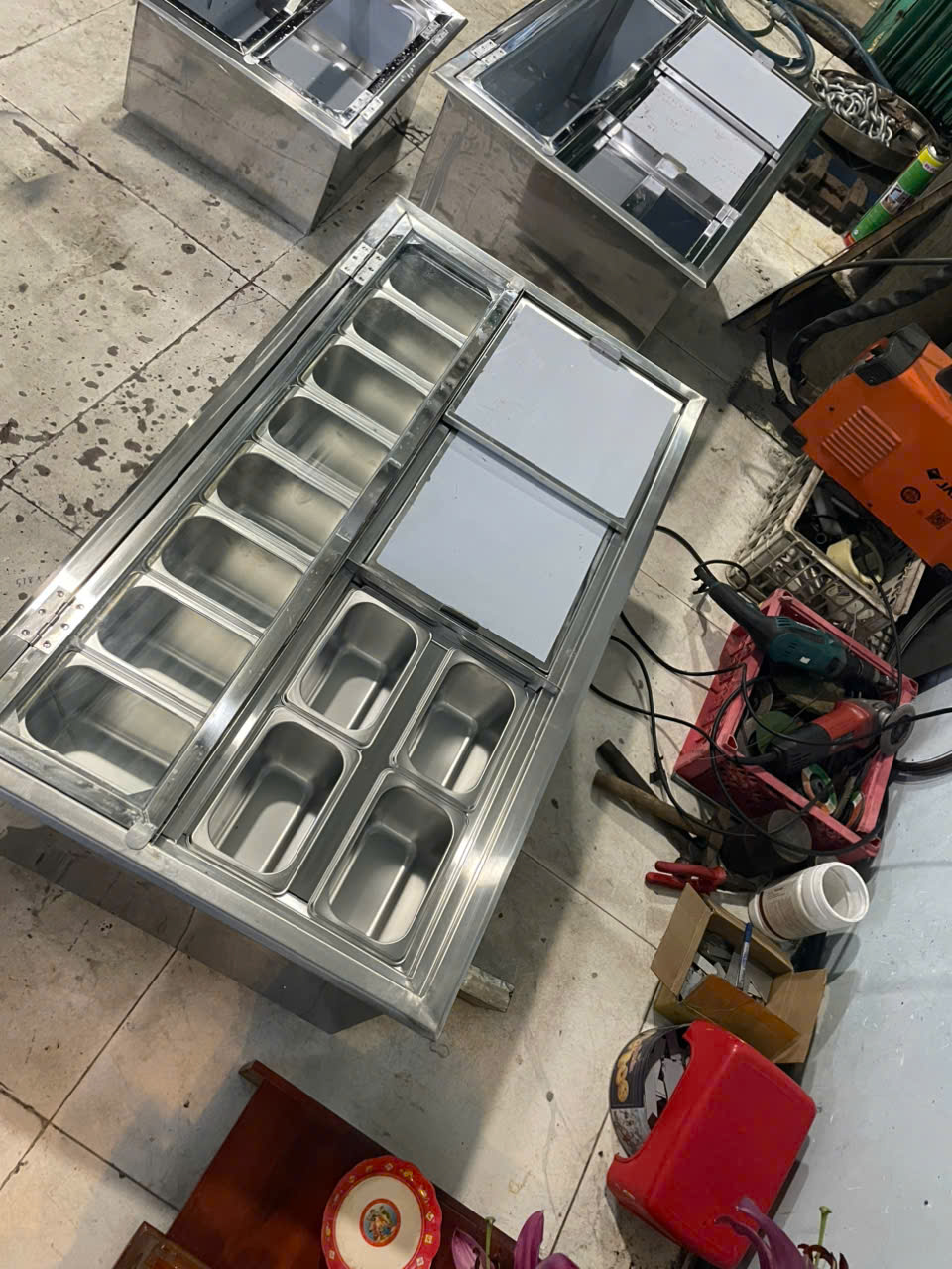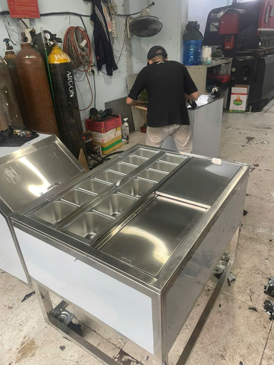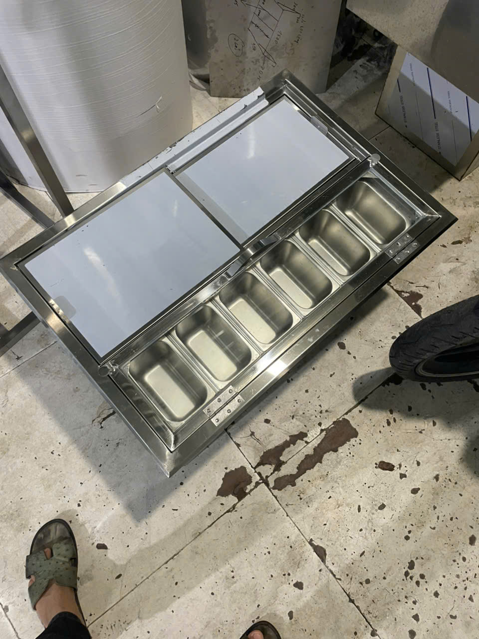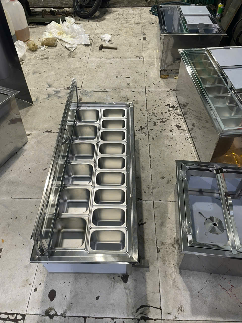 Hình ảnh gia công thùng đá inox có khay topping