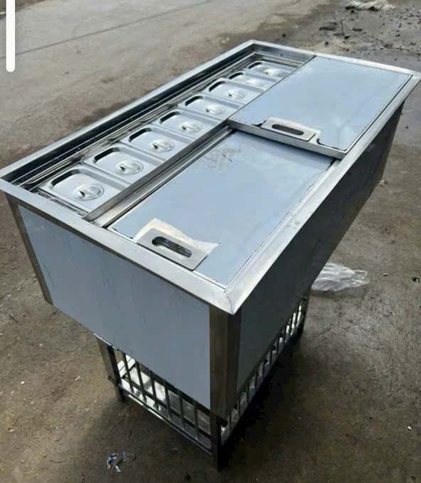 Gia công thùng đá inox kèm 12 khay topping cho khách hàng