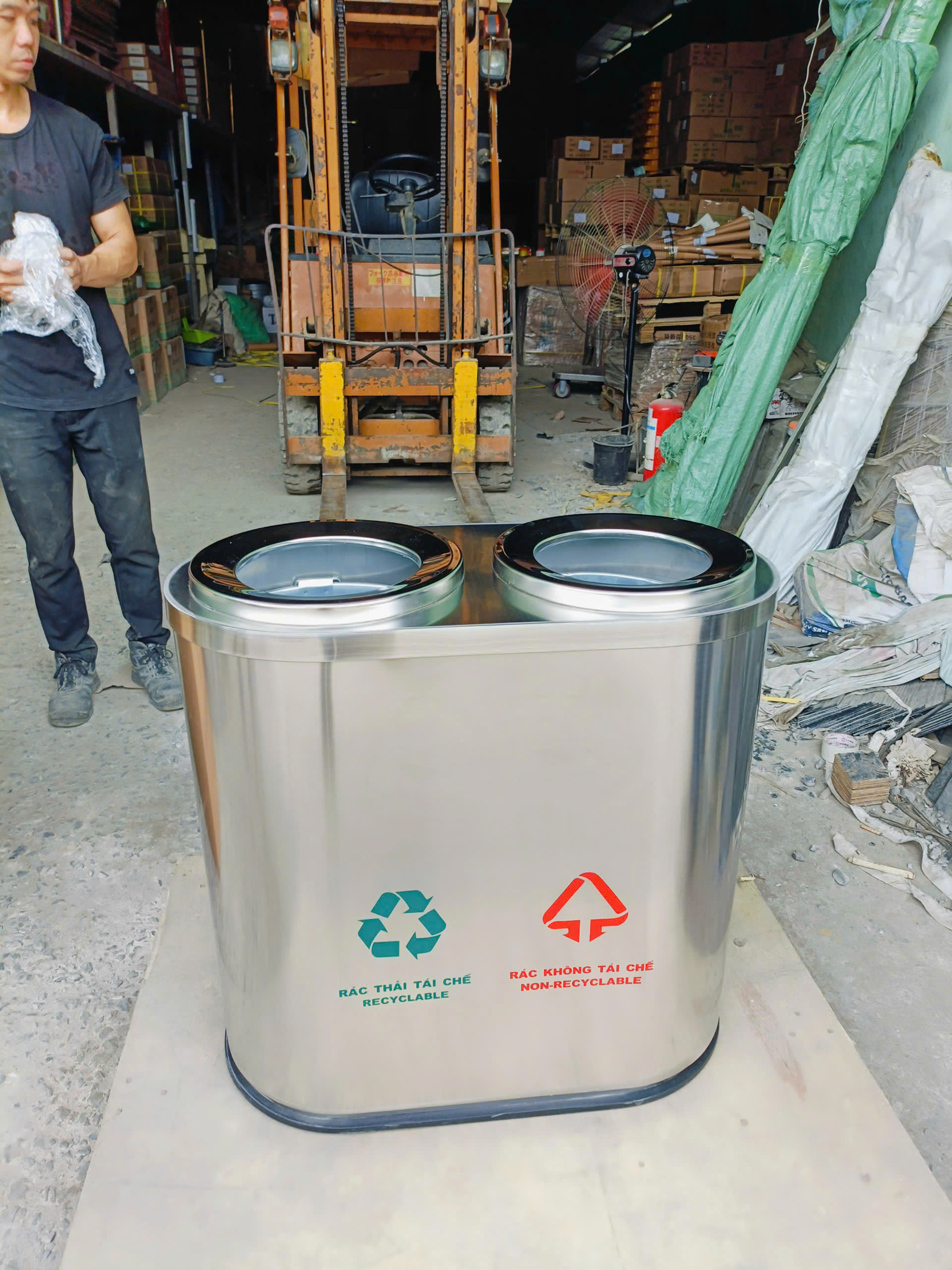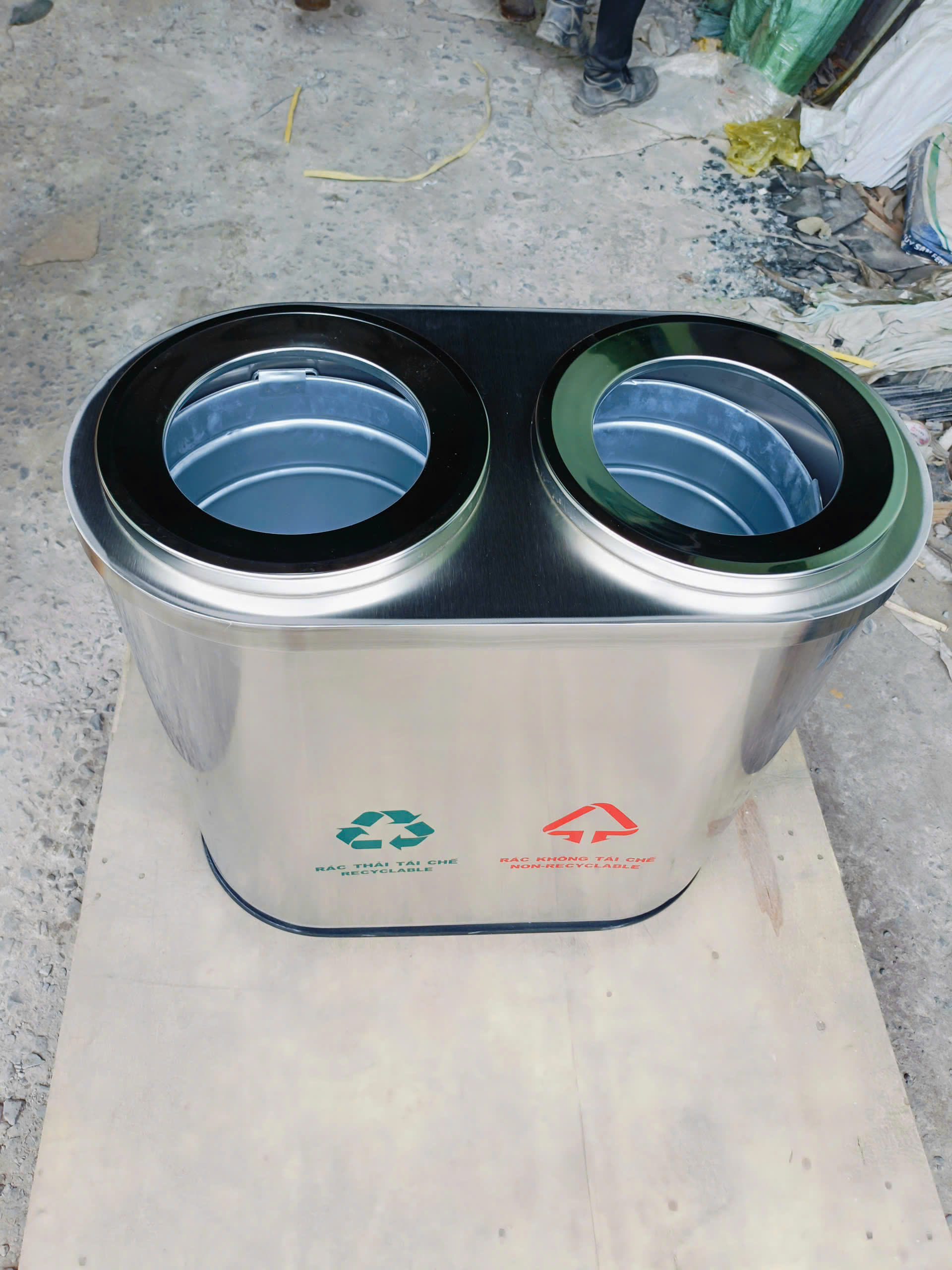 hình ảnh thùng rác đôi inox công nghiệp
