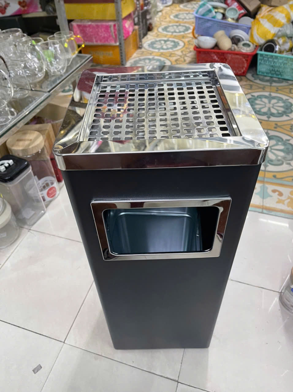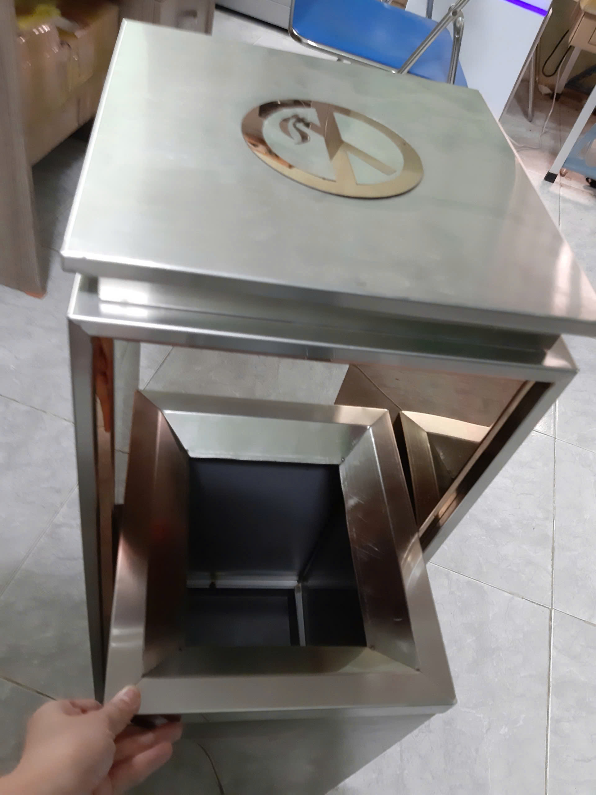 hình ảnh thùng rác inox vuông có gạt tàn