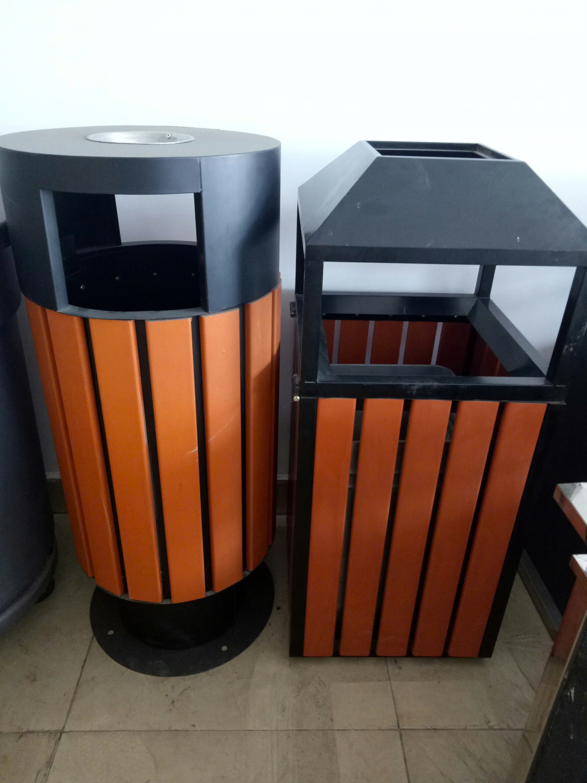hình ảnh thùng rác inox giả gỗ ngoài trời