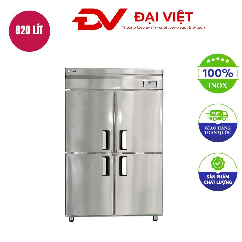 [Tủ đông đứng 4 cửa inox làm lạnh trực tiếp] là thiết bị lưu trữ thực phẩm công nghiệp dung tích 820L, vỏ inox bền bỉ, làm lạnh trực tiếp bằng dàn ống đồng, giữ nhiệt độ ổn định -13ºC đến -21ºC, công suất 300W và bảo hành 2 năm. Phù hợp cho nhà hàng, khách sạn, bếp ăn công nghiệp, canteen và nhà thầu F&B cần lưu trữ lượng lớn thịt, cá, hải sản. Sản phẩm phân phối chính hãng bởi Cơ Khí Đại Việt — có kho sẵn, lắp đặt chuyên nghiệp và dịch vụ bảo hành tận nơi. Gọi 037.907.6268 hoặc yêu cầu báo giá trực tuyến để được tư vấn dung tích và lắp đặt miễn phí.